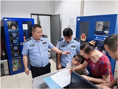 民警伍伟和辅警古金丰立即赶往现场将小女孩带回学堂湾站警务室。起初女孩因害羞不愿开口,经民警耐心安抚后,女孩断断续续说出父母姓名,但吐字仍不清晰。