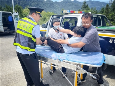 当前高温、强降雨等恶劣天气交替出现,极易引发高速公路边坡滚石、滑坡、溜坍等地质灾害。连日来,市交通执法总队高速公路第三支队执法人员奋战在执法监管一线,增加路面巡查频次,夯实日常监管。同时,妥善处置路面突发情况,做好执法服务,充分展示重庆交通执法队伍担当作为、为民服务的良好形象。图为执法人员协助转运事故受伤乘客。