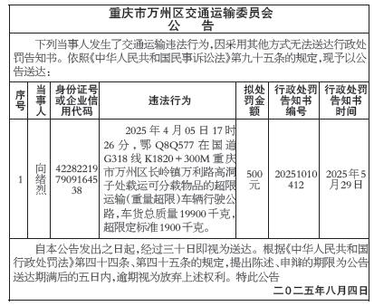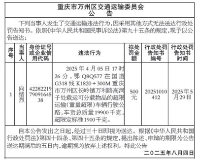 重庆市万州区交通运输委员会公告