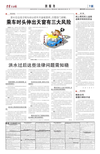 进入汛期以来,北京多地出现特大暴雨及洪水灾害,严重危害人民群众的生命财产安全。暴雨、洪水造成房屋损坏,由谁来承担损失后果?遗失物、漂流物的权属如何确定?机动车被泡水受损,保险公司会理赔吗?被户外广告牌或折断的林木砸伤责任由谁承担?暴雨导致财物、个人资产等受损当事人应采取怎样的措施?