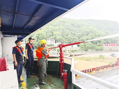 9月24日,朝天门海事处鱼嘴大队执法人员对“华蓥山”轮开展安检。随着该船安检的结束,船籍港为重庆的15艘滚装客船已全部完成安全检查,以良好的开航条件准备迎接节日假期的到来。本次安检共排查发现船舶缺陷57项,已全部整改。