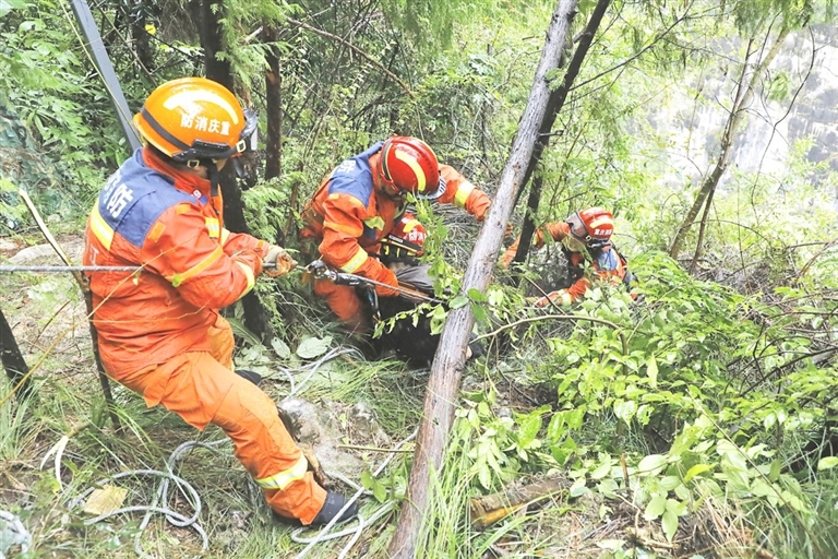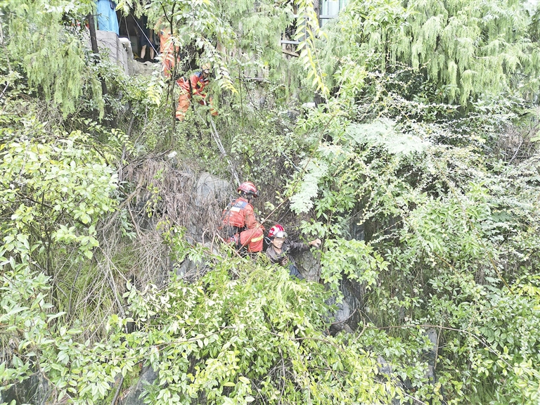 10月16日上午,黔江区一名56岁的采药男子不慎跌落悬崖,被困于悬崖狭窄的凹槽中。经当地消防、公安、医疗及群众携手救援,该男子最终成功脱险,并被送往医院接受治疗。