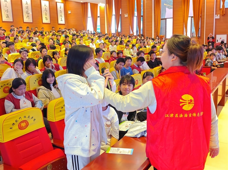 10月17日,江津区司法局龙华司法所联合相关部门走进江津区龙华镇龙门中学,开展送法进校园活动。现场通过“宣讲+互动+资料发放”的形式为学校初一、初二年级的300余名师生开展了法治教育活动,为参与师生普及法律知识,强化法治安全意识。