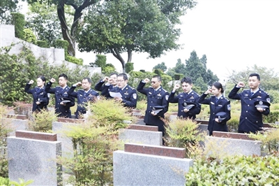 本报讯(通讯员 汪泽民 记者 饶 果)为弘扬英烈精神,激励广大民警矢志不渝做党和人民的忠诚卫士,4月2日,重庆轨道公安组织青年民警前往南山龙园公墓,开展祭扫王诵伦烈士活动(如图)。
