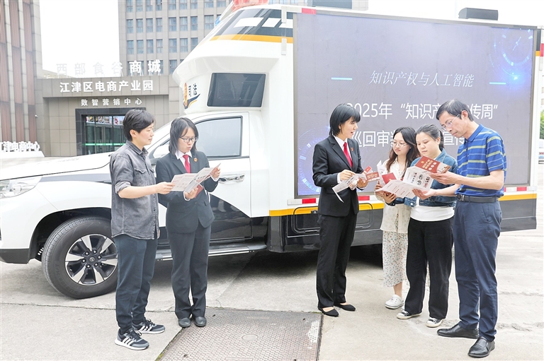 针对行业高发的不正当竞争行为形态,合议庭成员曾亚妮为园区企业代表及江津区市场监管局执法人员等50余人开展了专题讲座。讲座聚焦混淆行为、虚假宣传、商业诋毁等不正当竞争情形,通过典型案例阐释认定标准及法律后果,深入剖析责任承担规则,并提出风险防范实务建议。与会人员纷纷表示,此次讲座既强化了企业公平竞争意识,也为执法实践提供了指引,实现法治教育与监管效能双向提升。此外,合议庭成员还将5G“车载便民法庭”驶入园区电商产业园,通过播放宣传视频、发放宣传手册、提供法律咨询等,强化“创新有价、仿冒必究”法治共识(如图)。