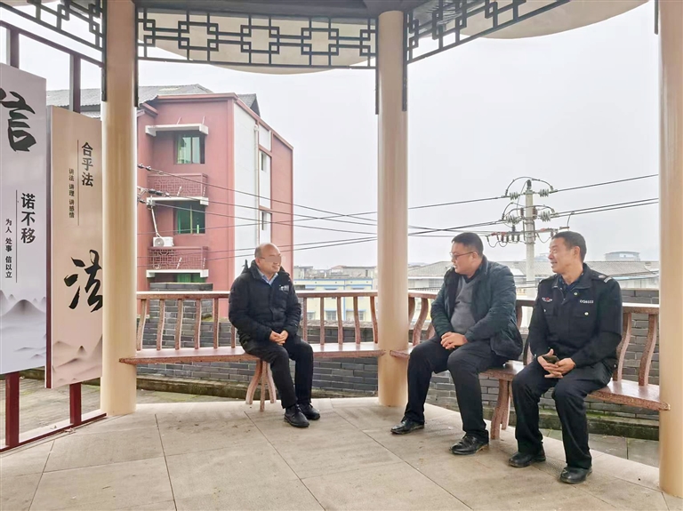 “古有路不拾遗夜不闭户,今有廊亭调纷小凳解诉”,在蔺市街道综治中心大厅门前,以“镇民逾年无讼事”的蔺市君子文化为基础,打造的“小廊亭”“君子亭”矛盾纠纷调解阵地十分亮眼,街道统筹平安法治办、重要行业部门、“调得快”“蔺郎调解团”等各类调解力量灵活入驻综治中心,通过“一站式”登记、受理、转办、办理群众诉求等工作规范,有效利用“一廊一亭”调解阵地,助推矛盾纠纷及时就地化解。