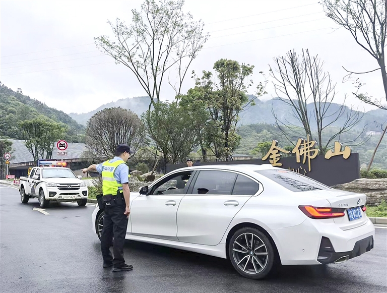 5月1日早上8点,“摩托快反队”民警聂聪已经整装待发,车辆配备喊话器、急救包、救生绳等,能在5分钟内快速抵达交通拥堵点位;在金佛山景区北坡入口,移动服务站成为“暖心补给点”,为游客提供应急药品、防暑物资、交通咨询等10余项服务;“尊敬的车主,绿水青山期待与您文明相约,请将爱车停至前方100米停车场”,该所组建“柔性劝导组”,对轻微违停车辆发放“温馨提示卡”,用劝导代替处罚。