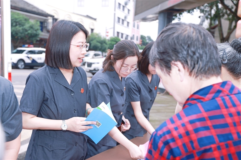 “黄土朝天几千年了,耕地和土壤也需要保护吗?”“我们普通人怎么保护水资源啊?”“一直住在这个古镇,原来这还是历史文化遗产呢!”围观的群众接过传单,好奇地与法院干警攀谈。多番交流,一拨又一拨的群众来了又走,环境保护的知识也在这个千年古镇传播开来。