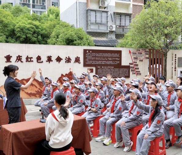 近日,城口县法院庙坝人民法庭邀请40余名小学生参加法庭开放日活动。学生们身着红军军服,系统了解红色革命法庭的诞生历程与职能使命,通过模拟法庭感受法律的庄严,法院干警依托“车载便民法庭”播放普法动画,将法律的种子播种在孩子们心中。