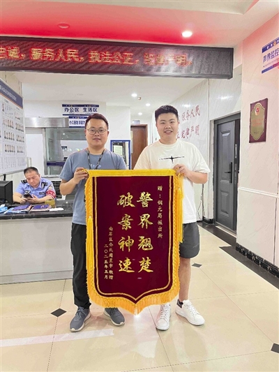 接到报案后,南坪镇派出所立即对案件展开侦查。通过调查研判,办案民警很快就锁定盗窃嫌疑人李某、何某,仅用2小时就将二人抓获归案,并全额追回被盗现金。5月下旬,王女士专程将一面锦旗送到南坪镇派出所,对民警快速破案挽损表达深深谢意。