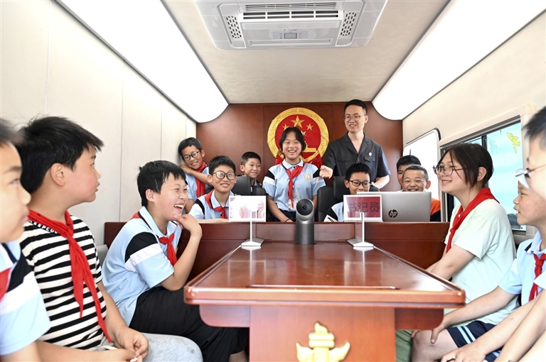 近日,梁平区法院福禄法庭来到福禄镇中心小学开展“‘禄’力同心 法护花蕾”校园普法活动。法庭干警通过法治年画主题展、邀请学生体验车载便民法庭、赠送法治年画文创产品以及角色扮演等形式,向同学们讲解法律如何守护他们的权益,为同学们带来了一堂生动有趣的法治教育课。