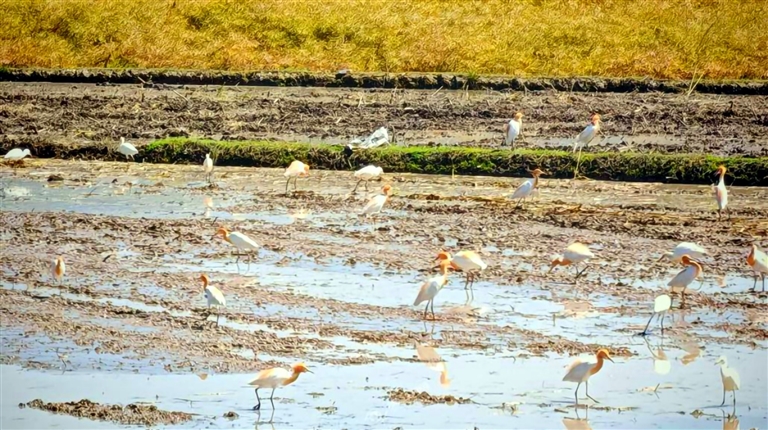 秀山县良好的生态环境还吸引了国家二级保护动物钳嘴鹳首次现身。素有“环境检测师”之称的白鹭对栖息地的水质与空气质量要求极高。近年来,秀山县坚持绿色生态发展理念,通过湿地修复、水资源保护和生态农业推广等措施,生态环境持续改善,多种珍稀鸟类频繁现身田间地头。据统计,秀山县现有鸟类125种,珍稀鸟类国家一级保护动物1种;国家二级保护动物19种;重庆市重点保护动物8种;中国特有物种6种。钳嘴鹳、白鹭、小杜鹃等时而低空盘旋,时而田间觅食,时而亲近路人游客,构成了一幅人与自然和谐共处,生态似“画里秀山”的美丽画卷。