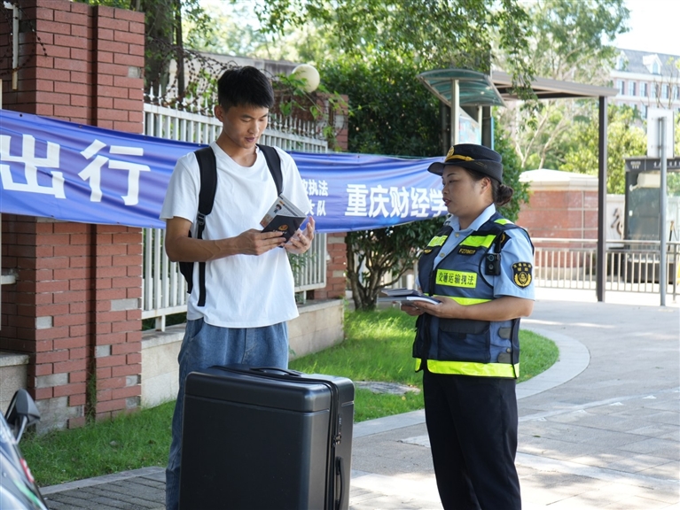7月3日,市交通执法总队直属支队巴南区大队执法人员走进巴南区高职城,向学生开展普法宣传,同时加强执法服务,切实筑牢学生出行安全屏障。