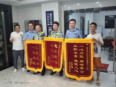 本报讯 7月7日下午,江北区公安分局交巡警支队石马河勤务大队收到了一份特殊的“礼物”——三面锦旗。一面印有“为民服务 忠于职守”,一面写着“一心为民 人民卫士”,还有一面写着“尽职尽责 温暖人心 一心为民 廉洁奉公”。这三面锦旗,讲述着江北区公安分局与时间赛跑,护送病危儿童转院就医的故事。