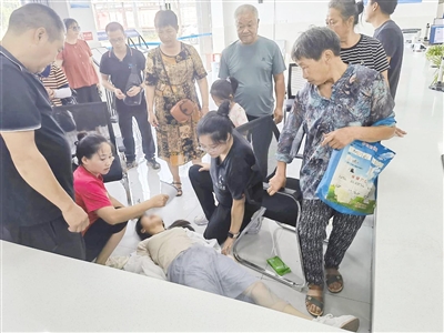 近日,大足区三驱镇社保服务中心发生了惊险一幕:一名正在排队办理业务的女子,突然晕厥倒地。此时,怀着7个月身孕的南岸区迎龙镇卫生院医生、红十字会会员文静挺身而出,通过检查判断该女子为心脏骤停,并立即为其展开心肺复苏。3分钟后,该女子心跳逐渐恢复,并被送往大足区人民医院接受进一步治疗,现已转危为安。