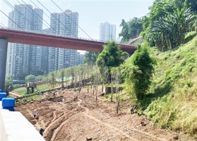 据悉,沙坪坝区沙滨路城中山体位于轨道环线桥下,华宇秋水长天与高家花园大桥之间地块,紧临磁器口景区,占地总面积3.46万平方米,是连接江北、沙坪坝的轨道重要通廊。该处山体在整治前为一片长期脱管闲置的荒地,因缺乏系统规划与精细管护,导致该处山体生态退化、风貌缺失、环境脏乱。