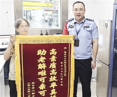 本报讯(通讯员 汪泽民 记者 饶 果)8月25日,一面写着“高素质高效率真棒 助老解难可亲可敬”的锦旗,连同一声声真挚的感谢,被韩奶奶亲自送到了勤务二支队江北机场T3航站楼站中心警务室。这面鲜红的锦旗和一封手写的信笺,共同诉说着一个警民连心的暖心故事。