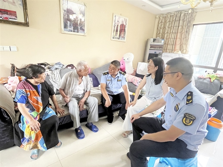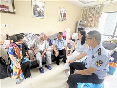 本报讯(记者 舒楚寒)“真是太感谢你们了,我们老两口年纪大了,出门不方便,正为老年卡更新的事儿犯愁呢,你们就上门帮忙办好了!”9月9日上午,家住渝北区仙桃街道同盛路社区的87岁老人颜合龙,激动地对市交通执法总队直属支队渝北区大队队员说道。当天,执法人员顺利帮两位老人完成了敬老卡更新手续,解决了他们的心头难题(如图)。