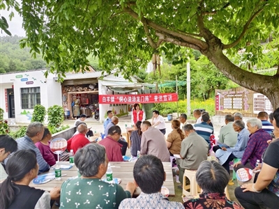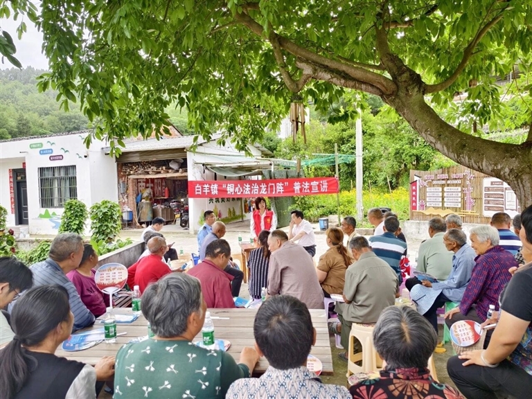 “小院议事”解民忧,矛盾纠纷就地化解。以民情收集为基础,建立“需求征集——精准响应——效果反馈”工作链条,依托“法治龙门阵”活动收集群众法律需求与民生问题。组建由镇村干部、法律明白人、乡贤等组成的调解团队,现场调解邻里纠纷55起,化解欠薪等积案2件。通过“法治文明户”评选、法治公约制定等活动,从源头减少矛盾发生,实现“小事不出院、大事不出村”。