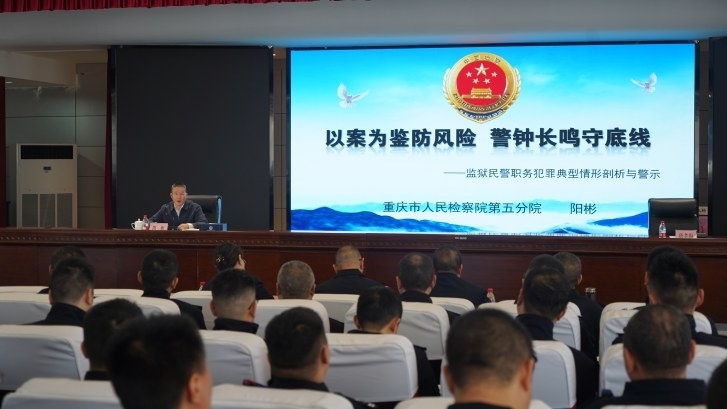 本报讯 10月28日,渝西监狱召开“以案为鉴防风险 警钟长鸣守底线”专题警示教育大会。会议特别邀请市检察院第五分院检察委员会专职委员、二级高级检察官阳彬开展授课。