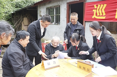 近日,重庆市大足区法院三驱法庭法官一行深入大足区铁山镇,将巡回法庭“搬”到了七旬老人赵大爷的家门口,并与四川省安岳县法院李家法庭通过“资足无讼”川渝司法协作机制联合调解了一起赡养纠纷。经川渝两地法官、镇政府干部共同调解,双方解开心结后,原告赵大爷当庭撤诉。
