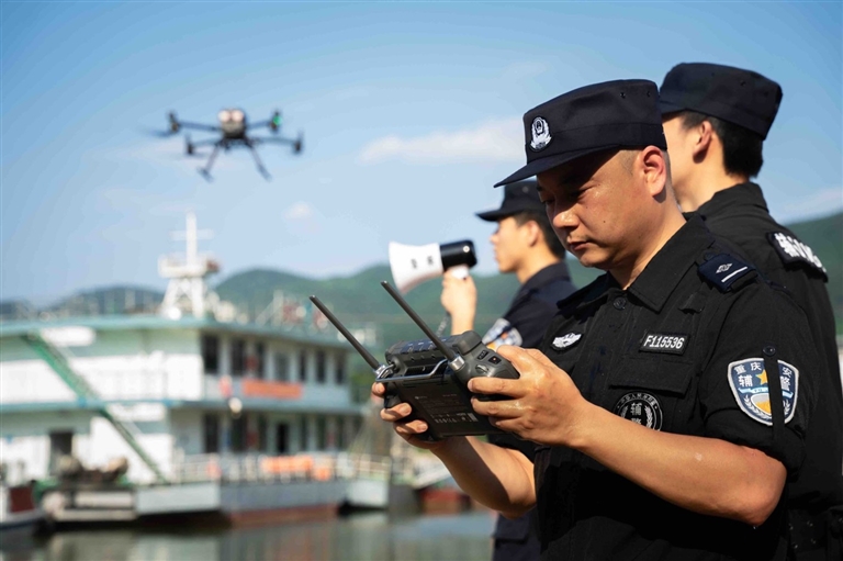 “嗡嗡”声中,“北碚警鹰”无人机掠过嘉陵江岸,实时传回岸边画面。这支“空地”力量紧密配合,已开展立体巡防256次,协同守护着沿江区域安全。在朝阳正码头,防溺水系统正启用着“智能化救援模式”,实现“落水即报警、定位即救援”,用科技“翅膀”守护着江边散步休闲的群众。