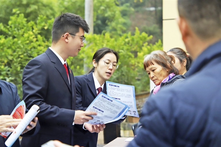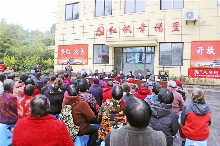 12月4日,市检察院五分院、巴南区法院、巴南区检察院等单位在巴南区二圣镇幸福村,开展以“‘宪’入乡村,法护幸福”为主题的法治宣传活动,把法治服务送到村民“家门口”,让宪法精神像种子一样,在村民心里扎根。当天,共接待咨询60余人次,26个法律困惑在现场得到解答。