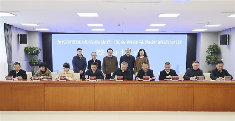 本报讯(记者 叶会娟)12月11日,渝川黔滇桂湘6省市9家基层检察院共聚重庆市沙坪坝区,共谋“加强跨区域检察协作 服务西部陆海新通道建设”。会上,9家检察院共同签署《关于加强跨区域检察协作服务西部陆海新通道建设的框架协议》,通过建立常态化协作机制、深化案件办理协同、强化信息共享与人才培养,凝聚法治合力,为西部陆海新通道建设提供全方位司法保障。
