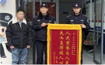一次警民合力寻找,一份完璧归赵的欣慰。几天后,向大娘的儿子王先生专程来到罗田派出所,将一面写有“人民警察为人民 失而复得暖人心”的锦旗送到民警手中,以表达全家人真挚的谢意(如图)。