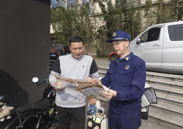 近日,重庆消防宣传人员走进住宅小区、沿街商铺,针对冬春季节火灾特点,向居民群众详细讲解家庭防火小技巧,进一步增强辖区居民消防安全意识,全面筑牢社会面火灾防控屏障。